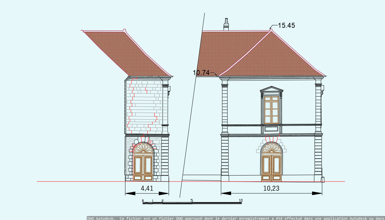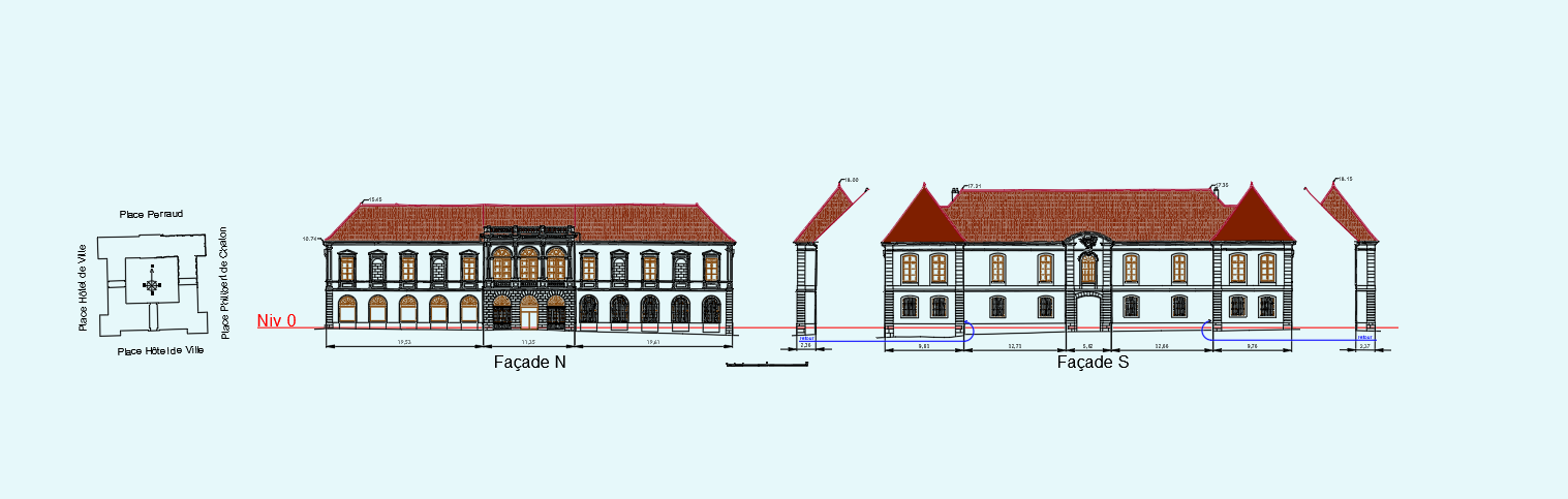 Relevé des façades scanner pour le traçage des élévations (planches manquantes au dossier, les plans en possession de la ville sont encore d’actualité, aucune modification depuis 1983).