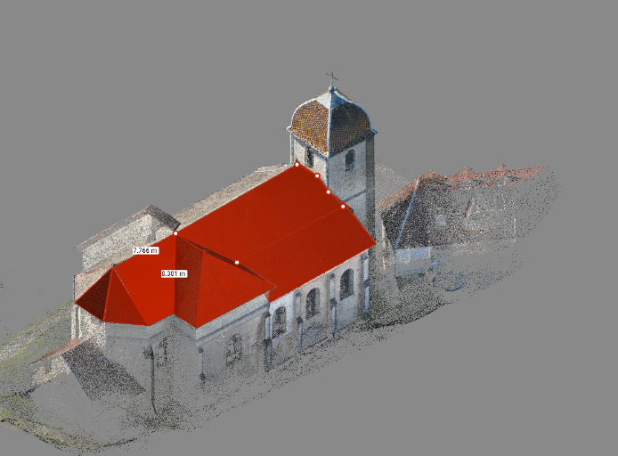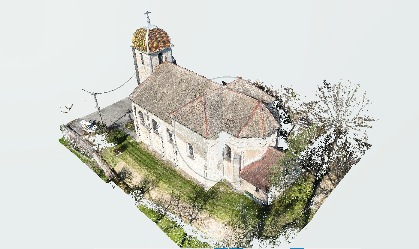 Église d’Amagney 25220 Un relevé d’église de plus pour l’architecte en charge du dossier. Double relevé scan et drone au vu de la situation topographique avec assemblage des nuages de points pour faciliter le traçage d’élévations, surfaces toiture.